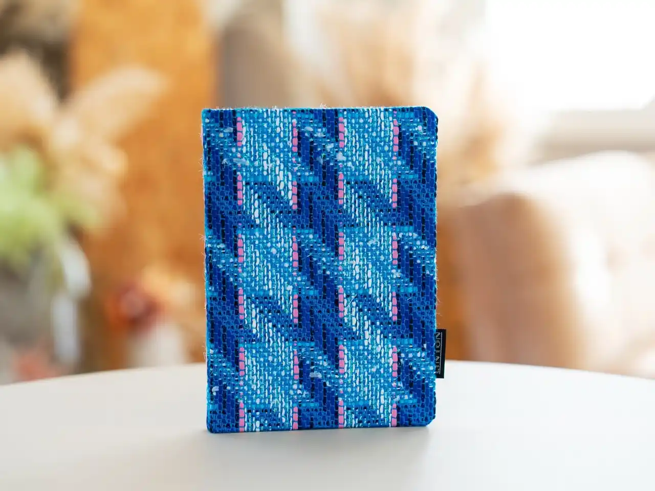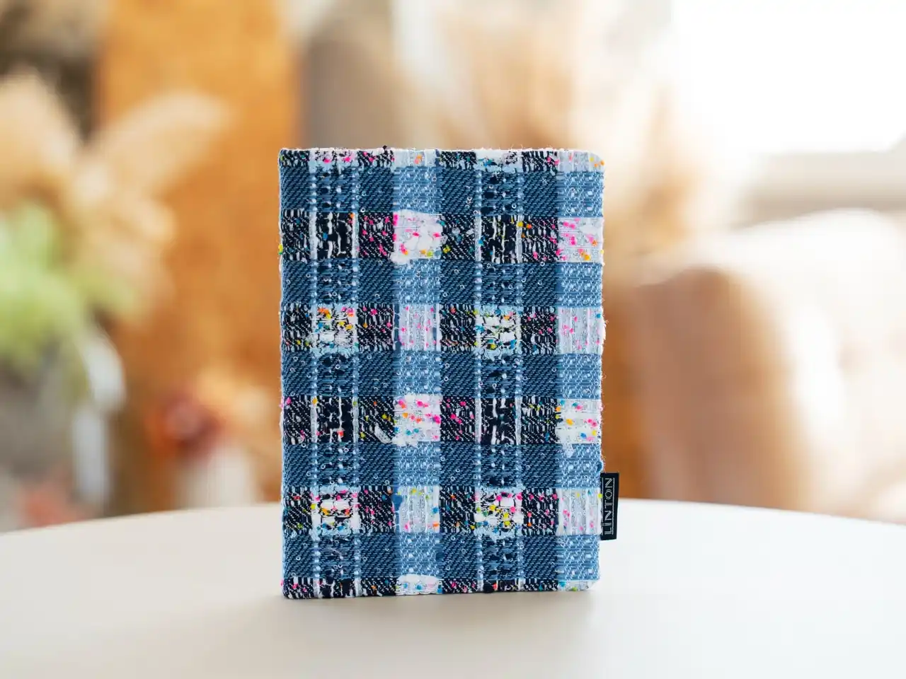 本商品は、日本製のハードカバー(上製本)仕様のノートです。生地加工から製本まで国内で行い、糸かがり綴じによる堅牢な造りと、ツイード特有の立体感ある表情を両立させました。