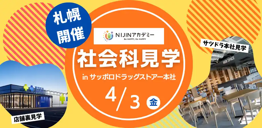不登校オルタナティブスクール「NIJINアカデミー」を運営する株式会社NIJIN(本社:東京都江東区、代表取締役:星野達郎)は、2026年4月3日(金)、株式会社サッポロドラッグストアー(本社:北海道札幌市、代表取締役社長CEO 富山浩樹)の協力のもと、不登校の小中学生が店舗や本社の裏側を学び、自ら考案した新サービスを提案する特別プログラムを実施いたします 。 |