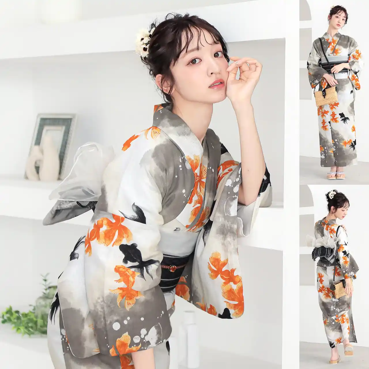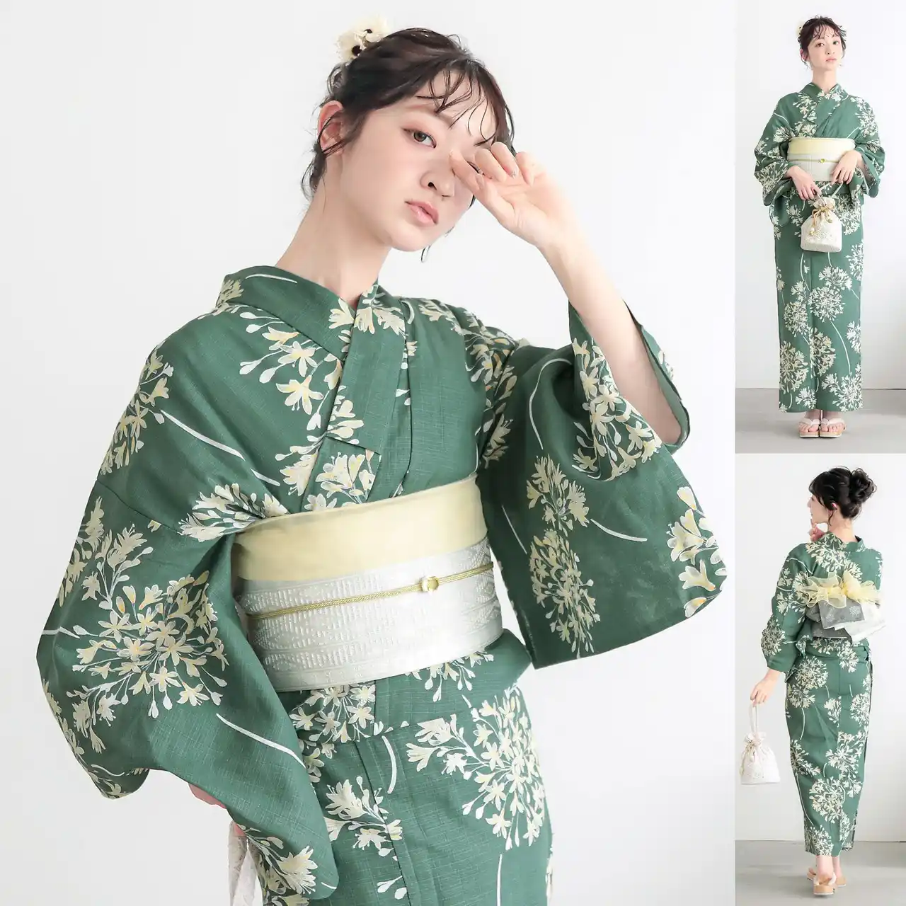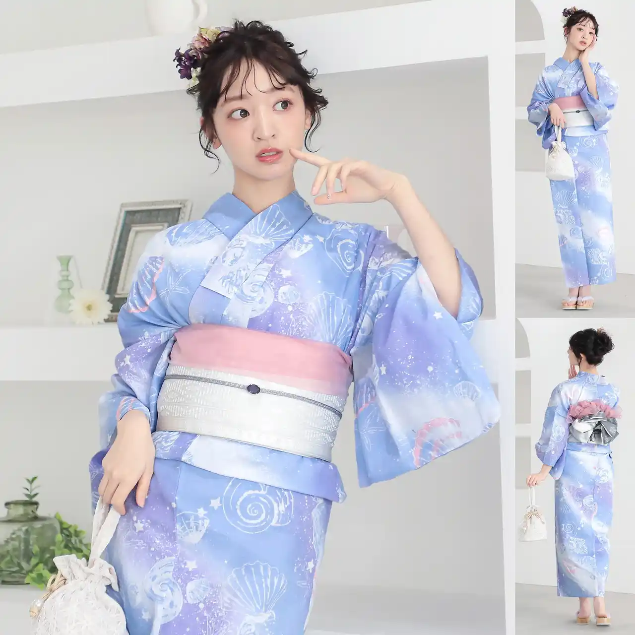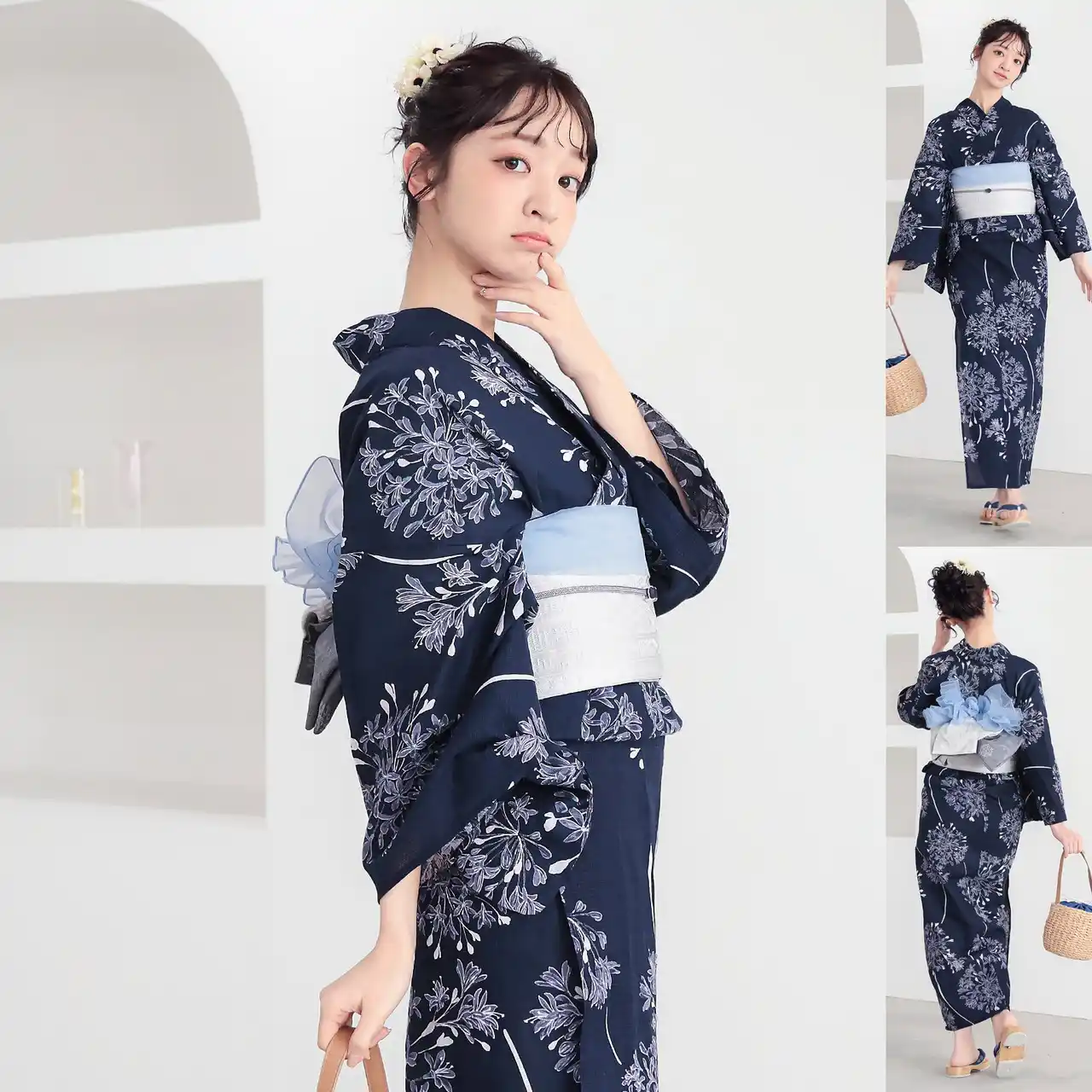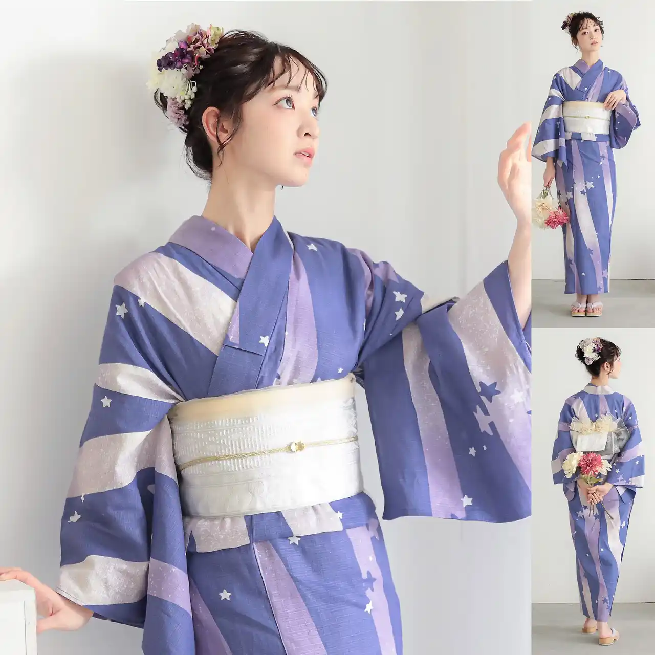 浴衣の柄の魅力を最大限に引き出す帯の色合わせはもちろん、「半幅帯」や「しわ兵児帯」との相性など、細部まで計算し尽くされたプロのスタイリング。和装の知識がなくても、届いたセットをそのまま着るだけで、周りと差がつく「こなれ感」のあるお洒落な浴衣姿が完成します。 |