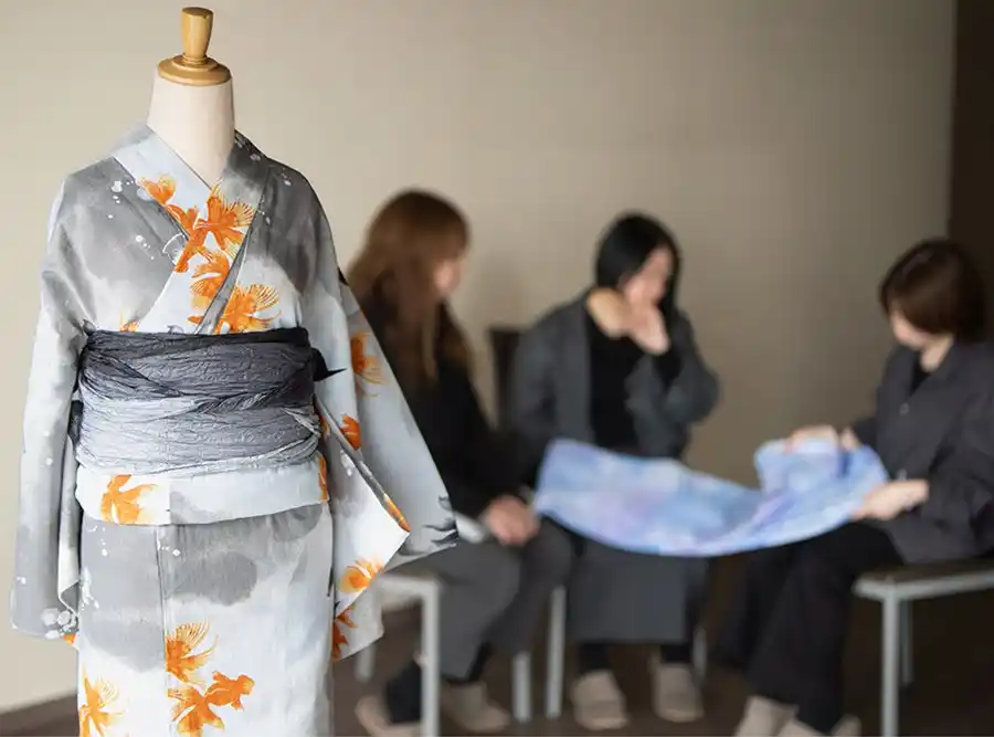 KIMONOMACHIはオリジナルデザイン浴衣をつくり続けて15年以上。お客様のリアルな声にスタッフの想いを重ね、京都の着物屋さんとしてこだわりぬいたコレクションを毎年発表しています。 |