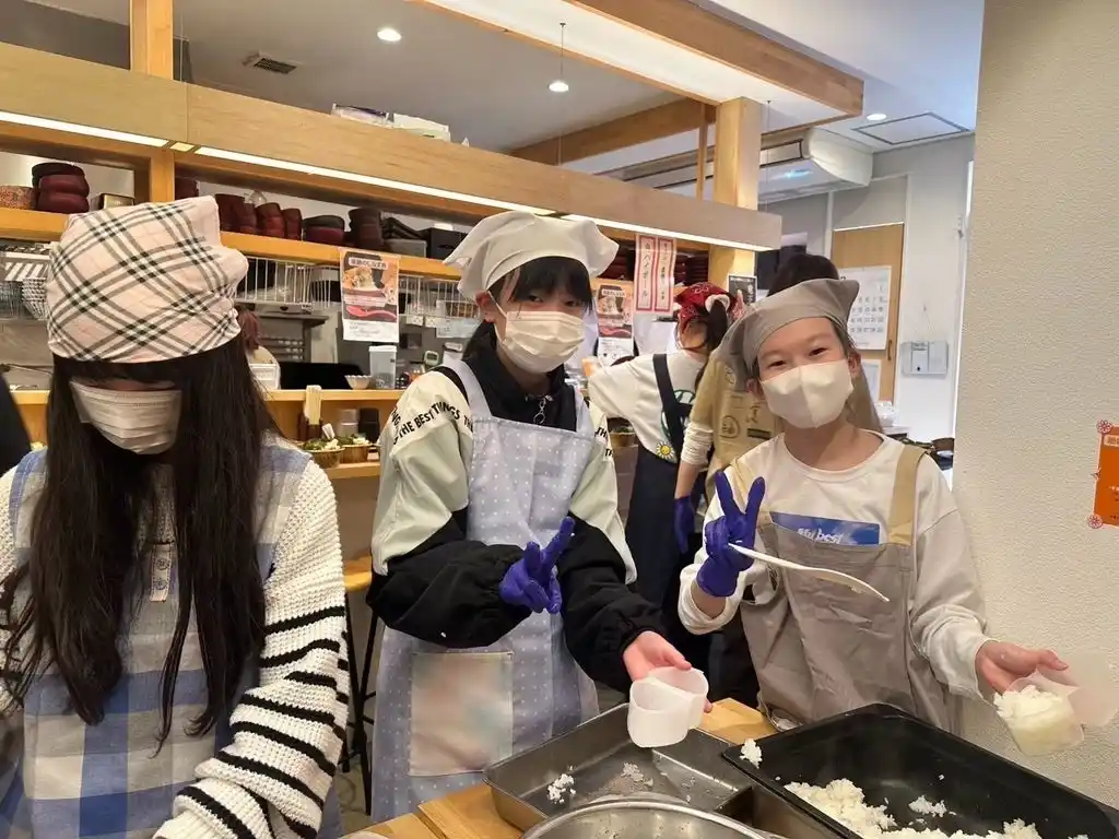 | 本イベントは、子どもたちが“小さなスタッフ”として、おむすび、豚汁の調理、配膳などを体験しながら、食の仕事の楽しさや、あたたかいごはんが人の力になることを学ぶ取り組みです。今回はおむすび200個・豚汁100食を用意し、100人分の食事づくりに挑戦します。 | |||||||||||