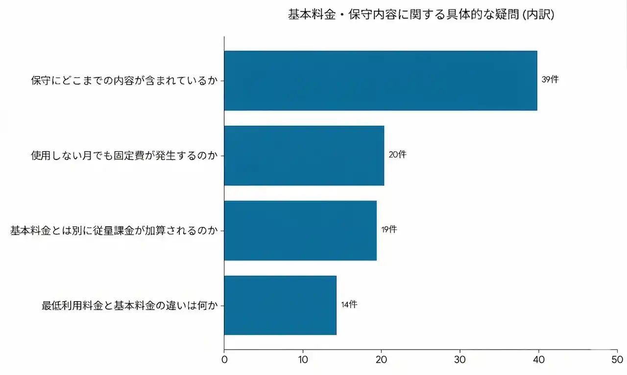 | 長期相談記録(2022-2025)を分析。「基本料金」への不安が44.3%にのぼり、カウンター保守の固定費が導入判断の論点になっている実態を提示。 |
