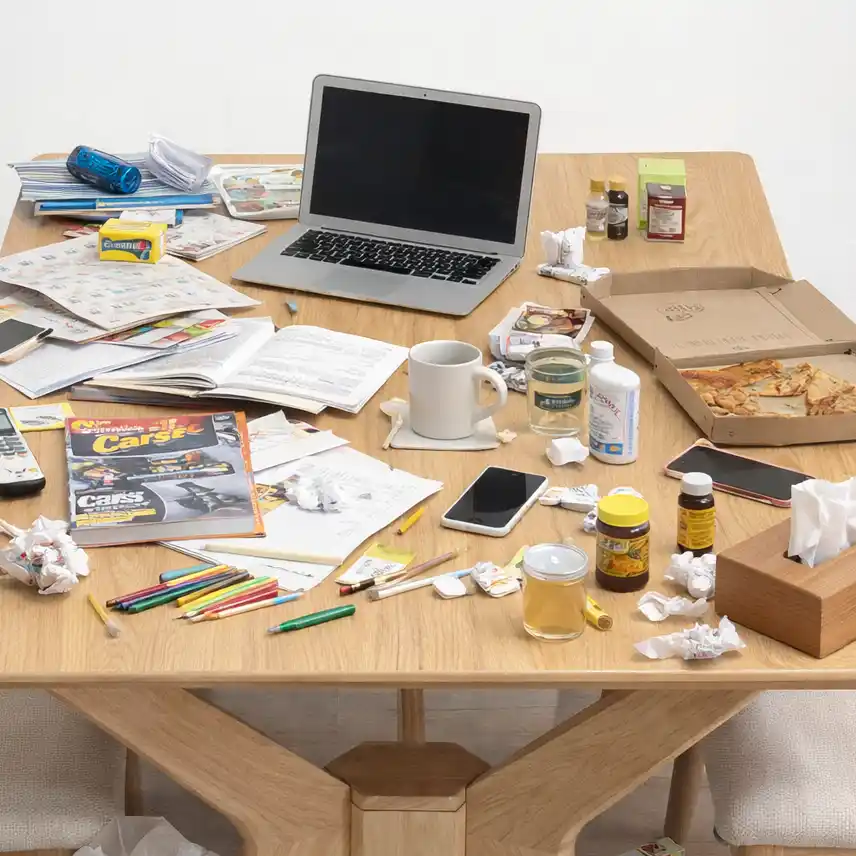 日常のダイニングテーブルは散らかりがちです。 |
