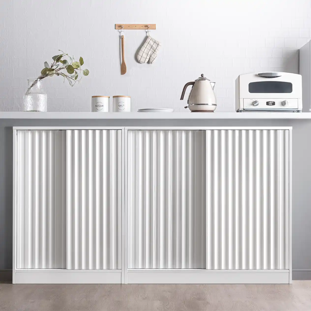 前板には陰影が映える美しい「波状デザイン」や、お部屋に馴染む「北欧風ツートンカラー」を採用しており、インテリアのアクセントとして空間を彩ります。 |