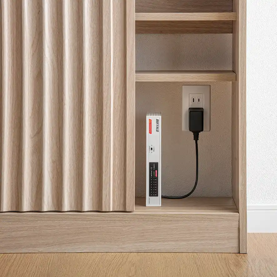 設置場所にコンセントがある場合でも、それを塞ぐことなくそのまま利用可能です。ルーターやスマートフォン、掃除機などのデジタル機器の充電拠点としても最適です。 |