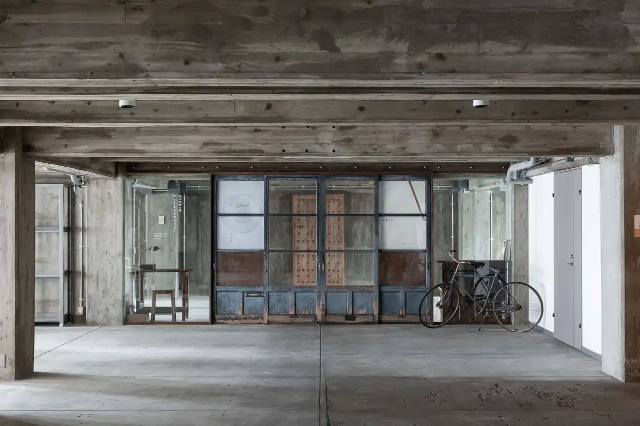 | 倉庫内は大量の本の荷重に耐えられるよう、コンクリートの太い梁が無数に走り、武骨な内観を見せています。コンクリートの質や工法──木枠の跡による多様な表情、柱梁の角すべてに施された面取りなど──も見どころで、往時の真面目な職人仕事を、時を隔ててまのあたりにする思いです。 | |||