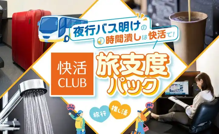 このたび、HISは全国にシェアリングスペース「快活CLUB」を展開する株式会社快活フロンティアと共に、早朝到着のバス利用者を対象に、「快活CLUB」を3時間1,500円で利用できるオプショナルプランの販売を開始します。バス移動に加え、次の目的までの空いた時間を身支度のお時間としてご利用いただけることにより、旅の質を上げ、より充実した時間を過ごしていただけます。バス申し込みと同時にお申込みいただくことで、お得にご利用いただけます。 |