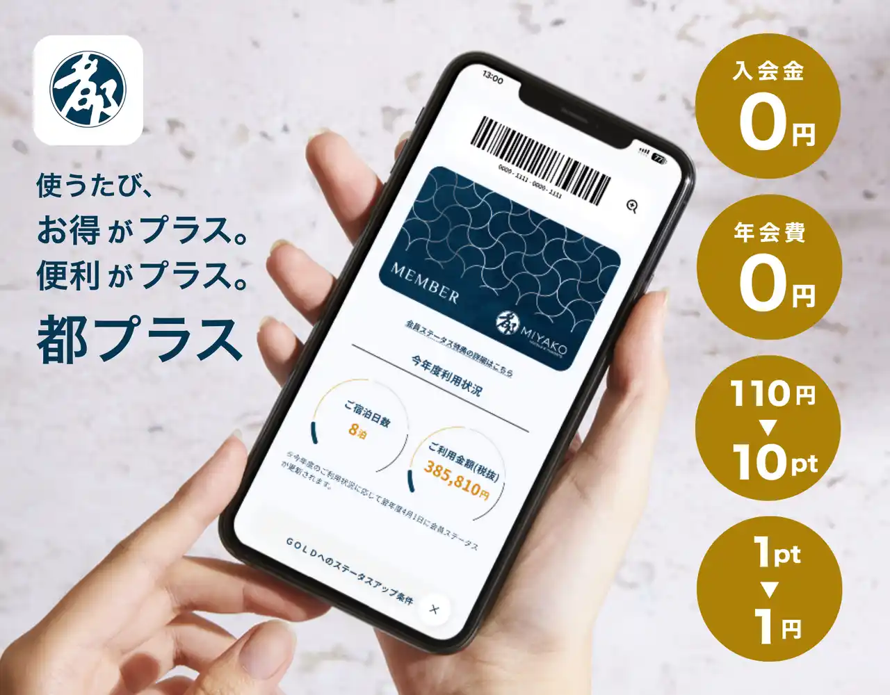 おトクな優待や割引がいっぱいのホテル会員です。 |