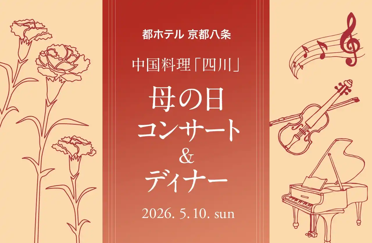 都ホテル 京都八条(所在地:京都市南区西九条院町17)は、2026年5月10日(日)の母の日に、「四川 母の日コンサート&ディナー」を開催します。京都市立芸術大学音楽学部の卒業生と現役生によるチャペルコンサートと、中国料理「四川」の人気コース(通常9,000円相当)をフカヒレの姿煮付きにアップグレードした、この日限りのスペシャルディナーをお楽しみいただけるイベントです。大切な方へ、日頃の愛と感謝を込めて、特別なひとときをご一緒に過ごされてみてはいかがでしょうか。 |