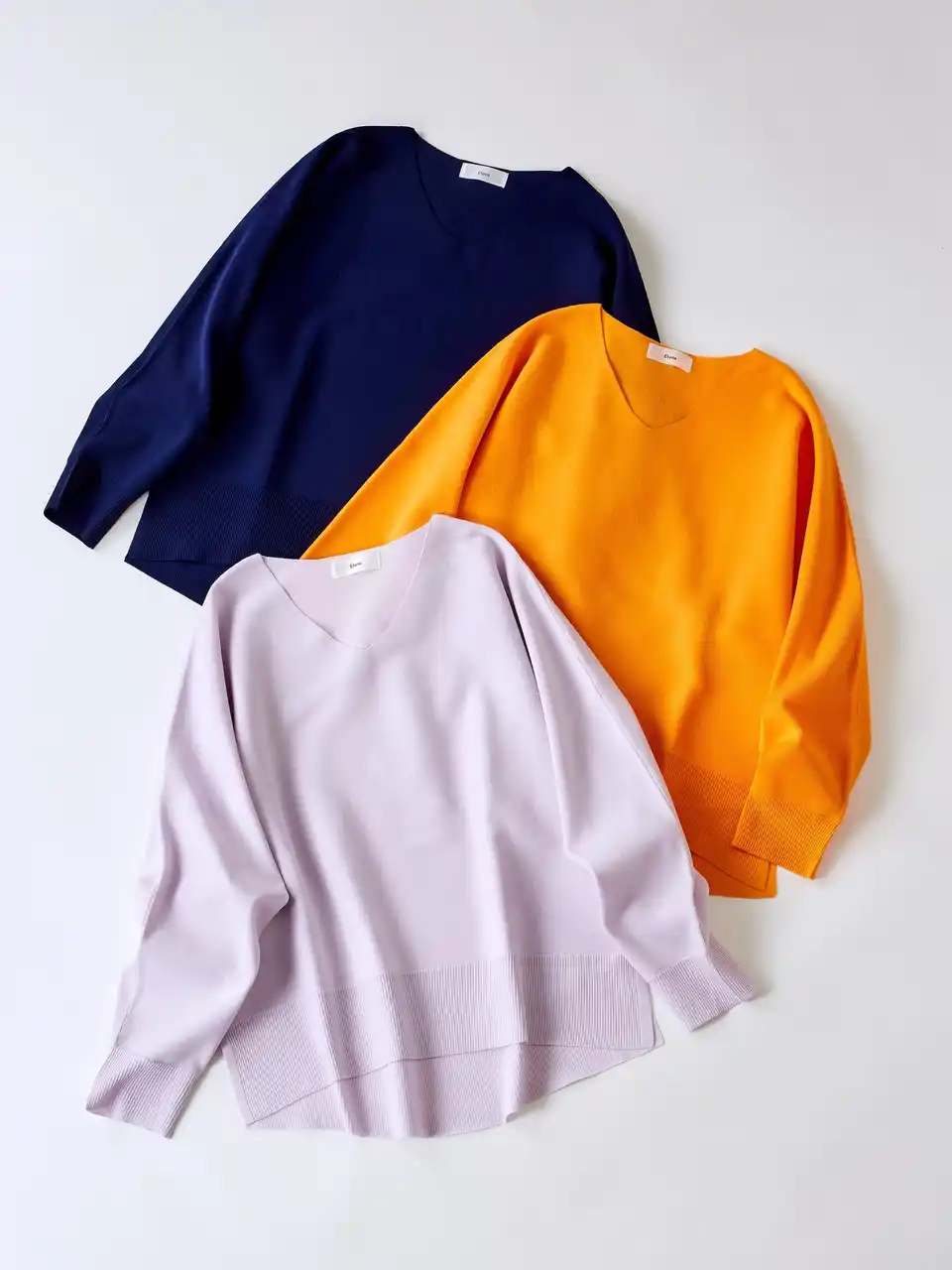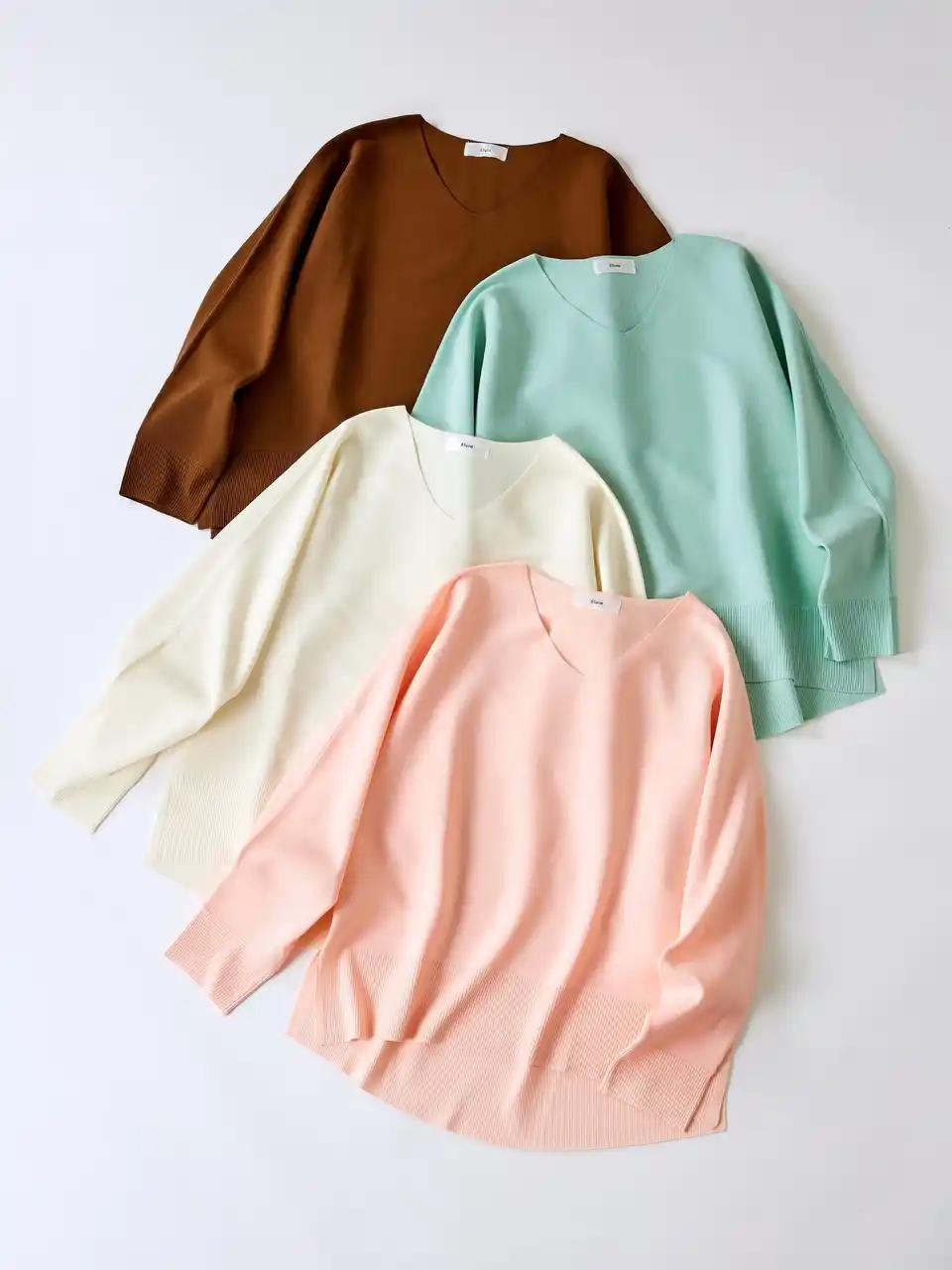 この春、EluraはWEB限定企画第4弾として、きれいな春色が映えるVネックニットを制作しました。昨年春に大好評で即完売となった「もっちり立体オーバーカーディガン」と同じもっちり素材を使用。素材に加え、身体のラインを拾わない緩やかなシルエットや程よく開いた絶妙なVネックなど、前回好評だったポイントを抑えながら細部まで調整。“大人の悩みに効く” Eluraらしさを追求した新作ニットとなっています。 |