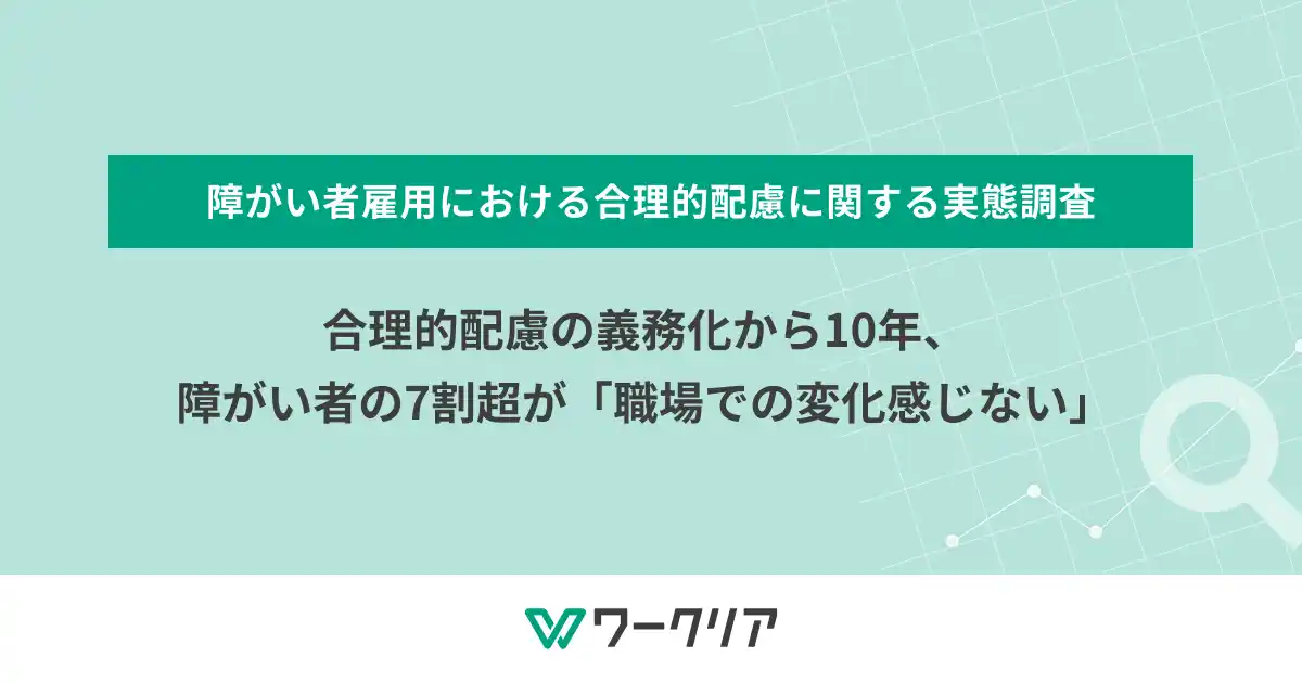 レバレジーズ株式会社が運営する障がい者就労支援サービス「ワークリア」( https://worklear.jp/ )は、2016年4月に民間企業の雇用分野における「合理的配慮の義務化」から10年を迎えることを受け、会社員として勤務している障がい者196名を対象に、障がい者雇用における合理的配慮に関する実態調査を実施しました。 |