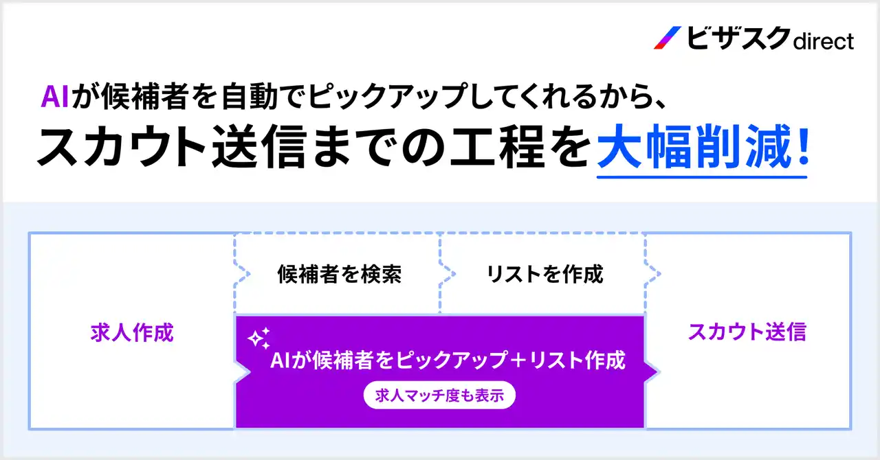 「知見と、挑戦をつなぐ」をミッションにグローバルなナレッジプラットフォームを運営する株式会社ビザスク(以下、当社)は、多様な「知見」を起点にした人材マッチングサービス「ビザスクdirect」において、正社員求人の公開と同時にAIがマッチ度の高い候補者を自動提案する「AI候補者レコメンド機能」の提供を開始しました。