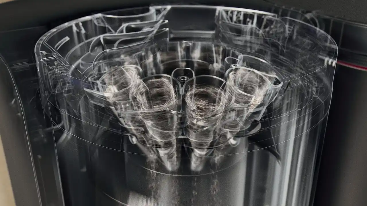 サイクロン式の自動ゴミ収集ドックが、ロボットの吸引力を維持 |