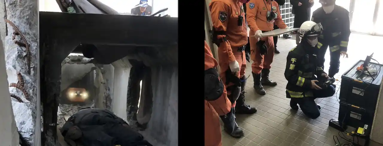 消防・救助現場において、隊員が危険な閉鎖空間に進入する前に、「IBIS2」を先行して投入することで「現場状況の事前確認」を行います。これにより、二次災害の防止と迅速な救助活動の両立を図ります。 |
