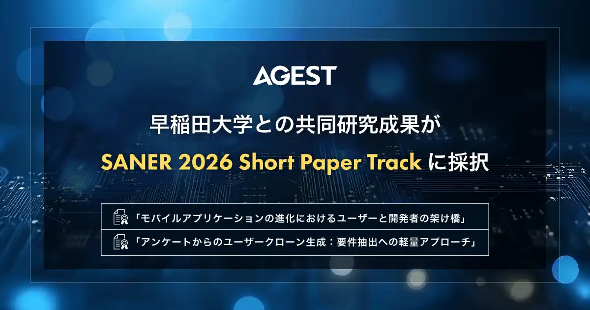 | 先端品質テクノロジーを活用してソフトウェアの品質・安全性向上を支援する株式会社AGEST(本社: 東京都文京区、代表取締役 社長執行役員 CEO: 二宮 康真、以下、「AGEST」)は、IEEE(米国電気電子学会)が主催するソフトウェアメンテナンスと再構築に関する権威ある国際会議「SANER 2026」のShort Paper Trackにおいて、早稲田大学との共同研究成果をまとめた2つの論文が採択されたことをお知らせいたします。 | |||