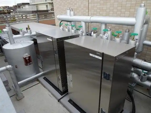 2台のヒートポンプは屋上に格納 |