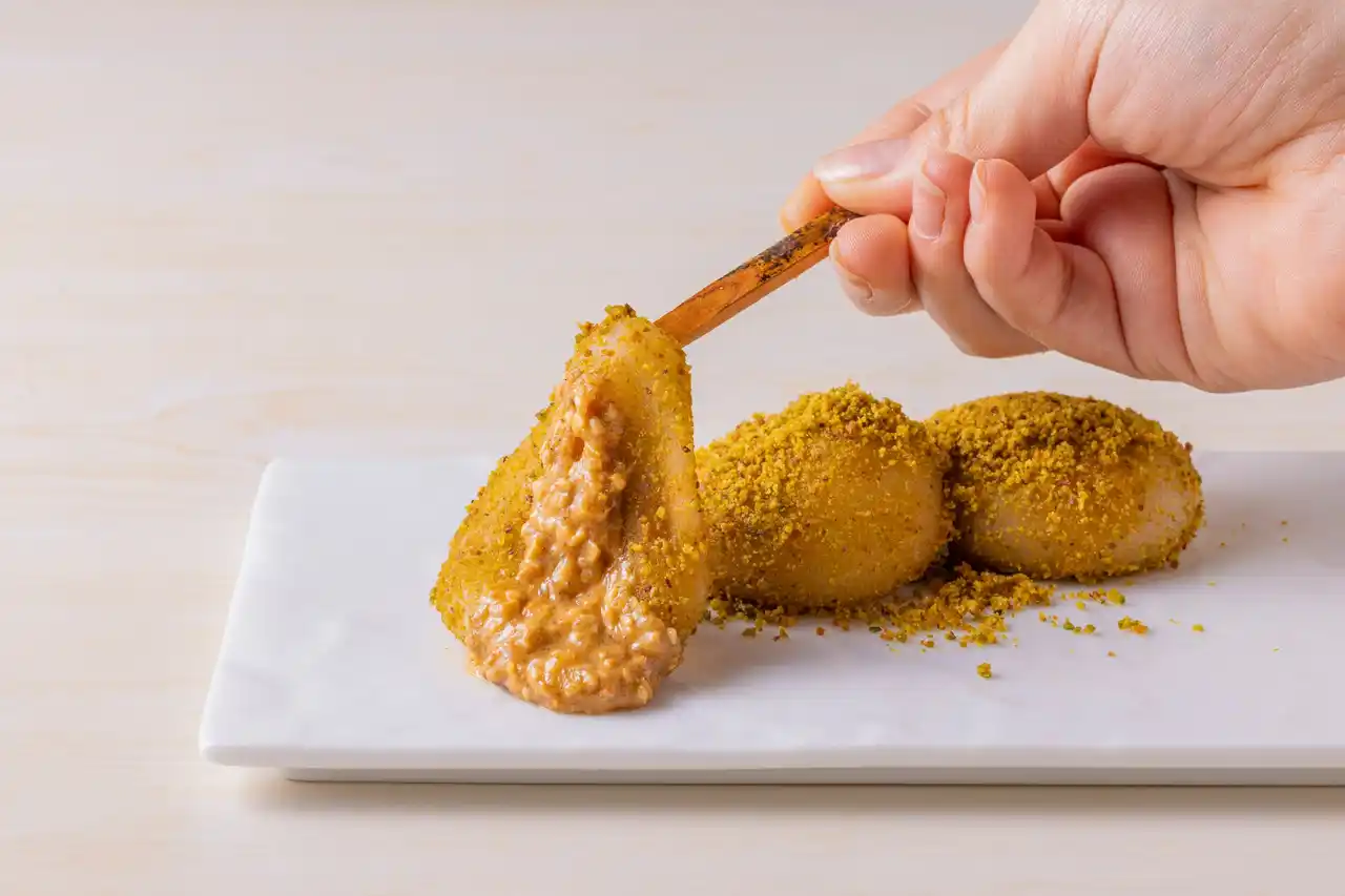 ピスタチオ×ピーナッツ×餅という新しい掛け合わせの和菓子をお楽しみください。 |