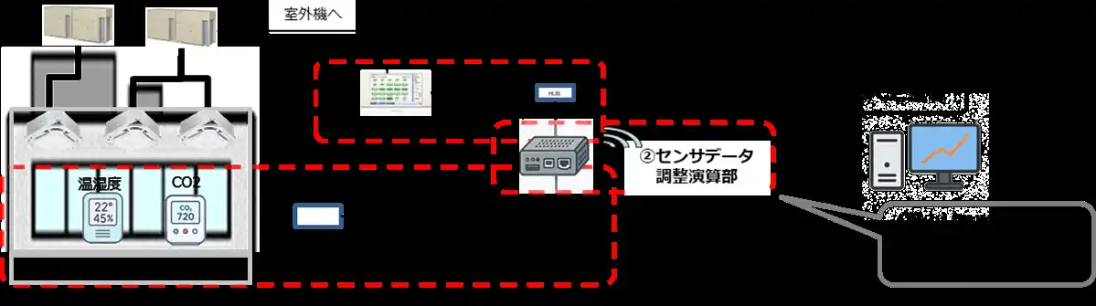 ※3:エッジサーバ: LINUX OSの制御用ボックスPC。室内環境と空調情報をもとに各機能の演算を実行。 |