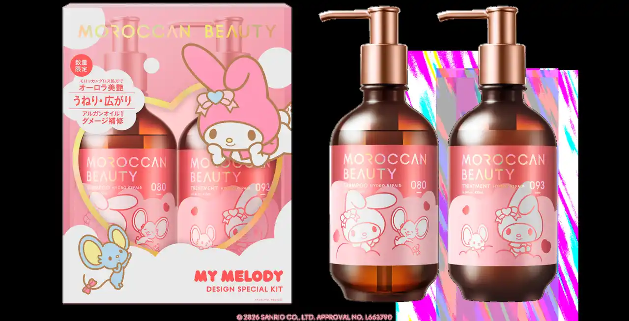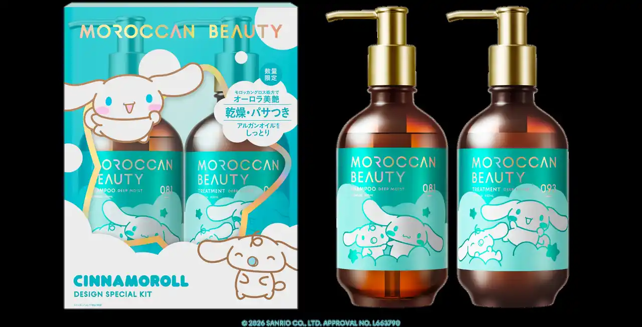 ボトルワークス株式会社は、オーロラのように光り輝く美髪へ導くアルガンオイル*配合のヘアケアブランド「MOROCCAN BEAUTY(以下:モロッカンビューティ)」より、株式会社サンリオの「シナモロール」「マイメロディ」とコラボしたスペシャルデザインのアイテムを数量限定で発売いたします。 |