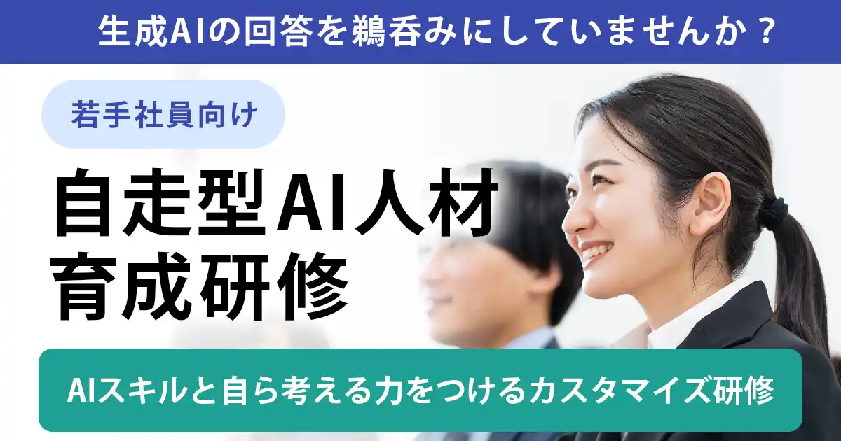 | 本研修では、AIの出力結果を鵜呑みにせず、業務の目的に照らし合わせて適切か判断し、主体的にAIと協働する「自走型AI人材」の育成を支援いたします。 | |||||||||