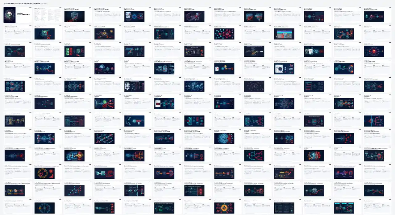プロンプトインジェクションからMCPサーバ攻撃、RAGポイズニングまで、80種の攻撃手法に予防策・検知策・対応策を体系化した164枚の実務資料