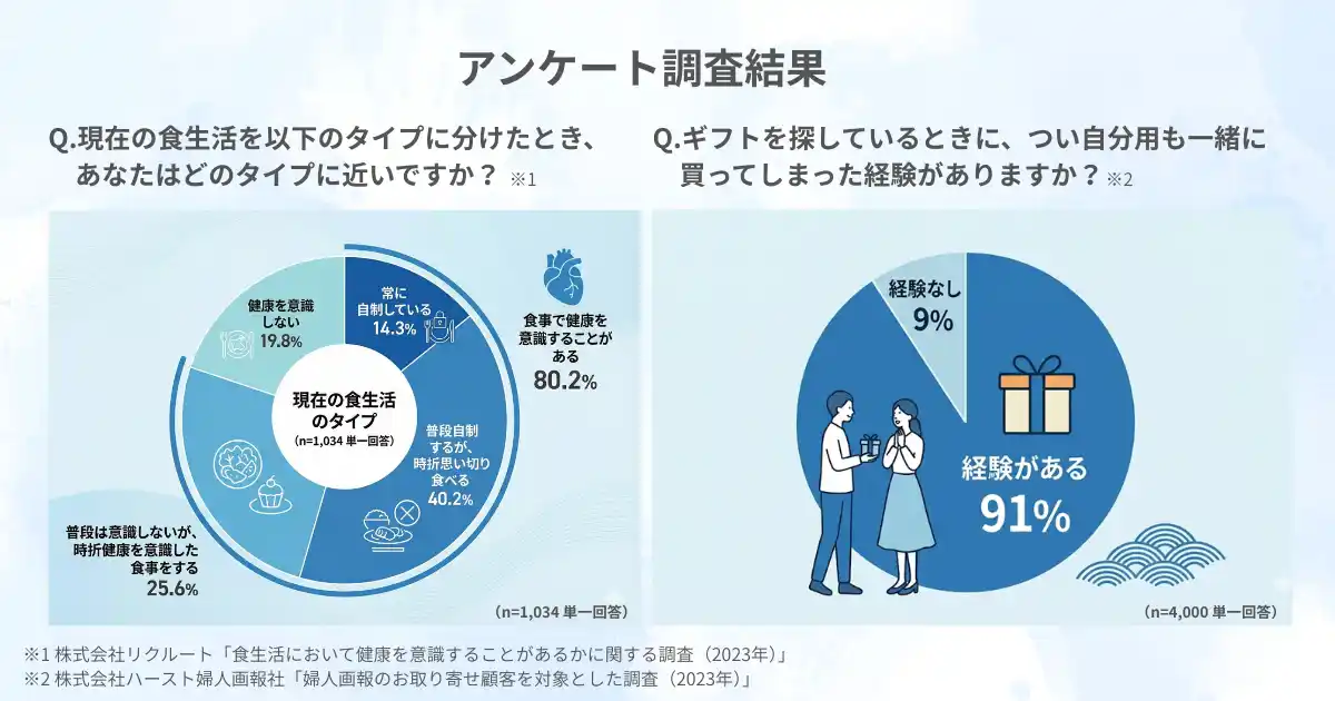 この結果からも、本当においしく体に良いヘルシーフードは、誰かへの贈り物としての需要にとどまらず「ご自身の身体を労わるためのご褒美(セルフケアアイテム)」としても求められていることがわかります。 |
