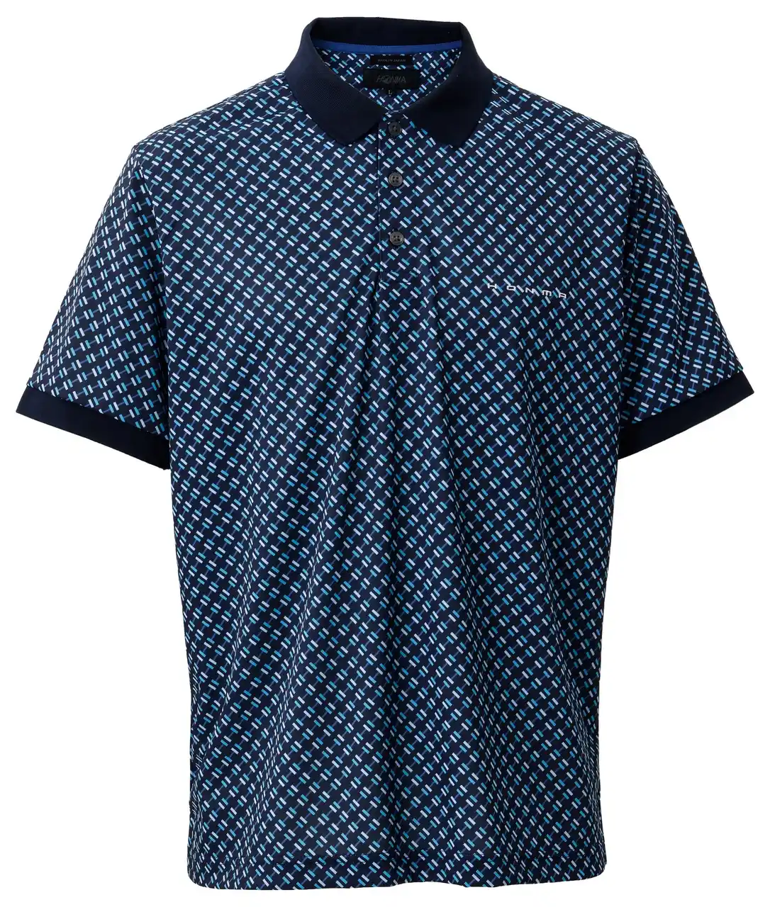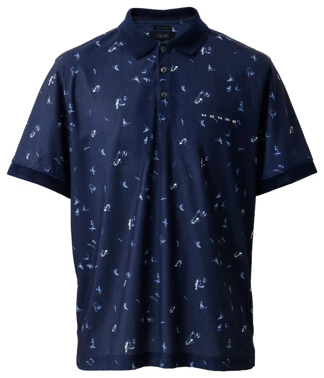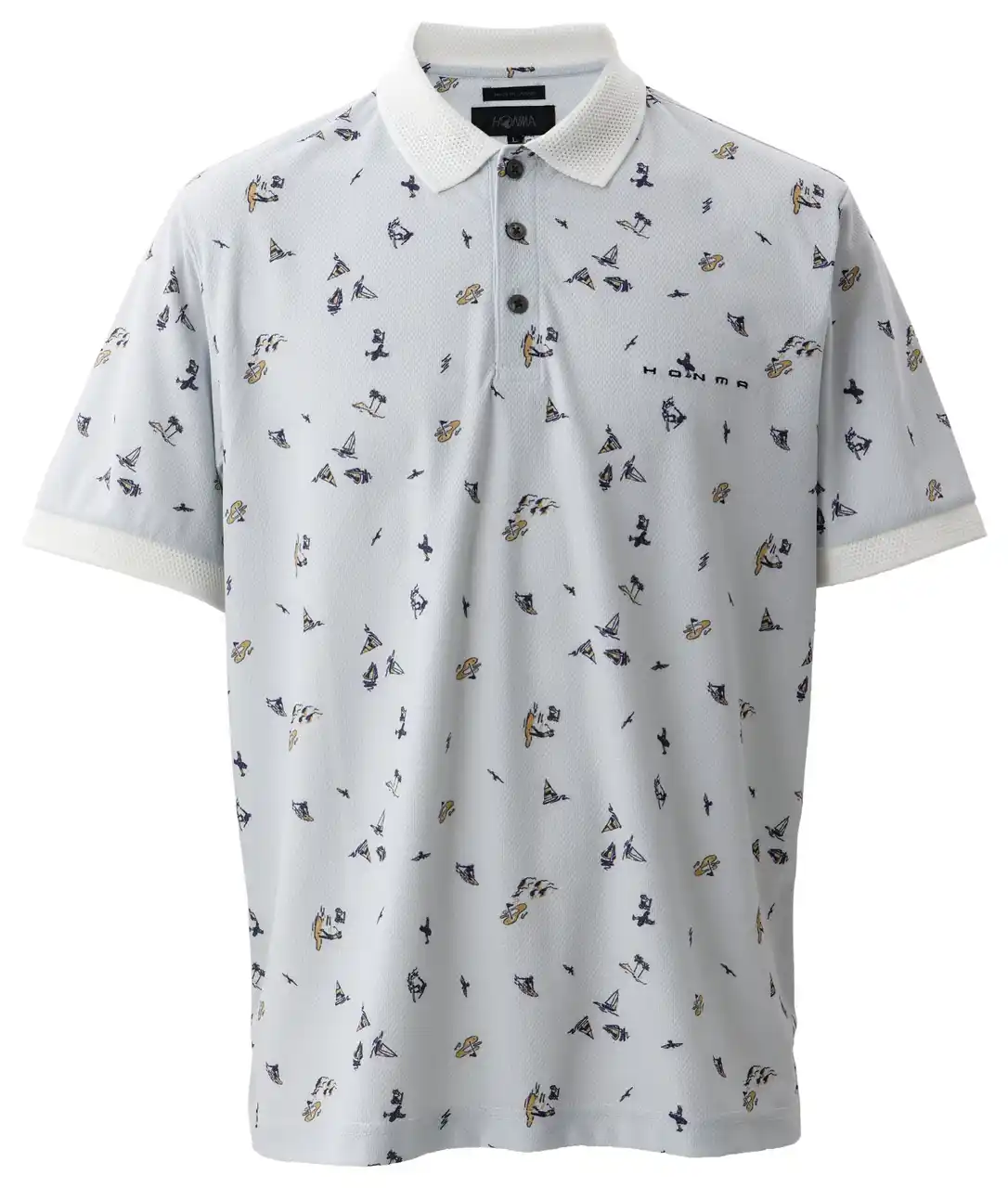 遮熱機能素材と総柄プリントを組み合わせた、夏らしい表情のポロシャツ。 |