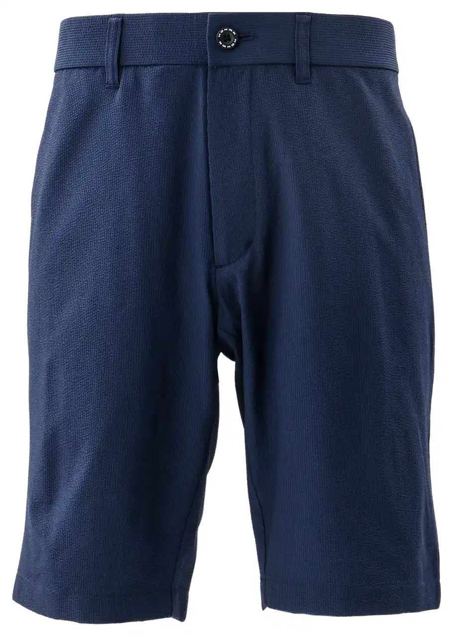 軽やかな着用感が魅力のサッカー素材ハーフパンツ。夏のゴルフスタイルに適した一本です。 |