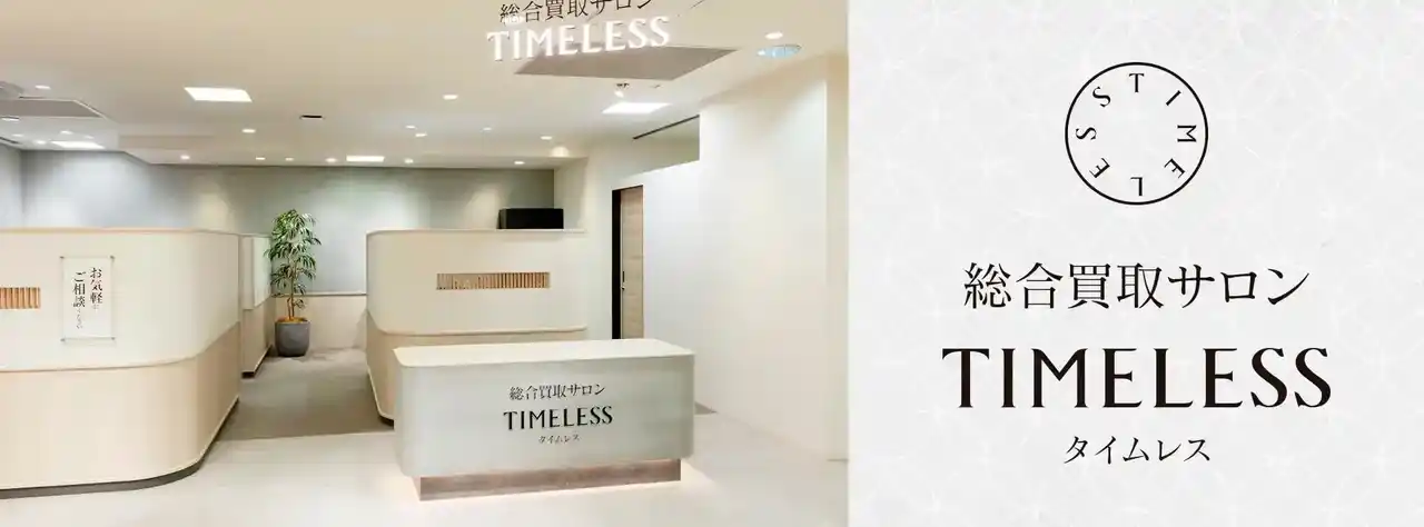 「総合買取サロンタイムレス」は”想い”によりそうパートナーとして、安心で質の高い買取をお約束する総合買取サロンです。百貨店出店が多く、全国合計44店舗(※5)となるタイムレスは、バッグや時計など、ご自宅に眠るさまざまな”モノ”を、“サロン”クオリティで質の高い接客にて買取を行っております。 |