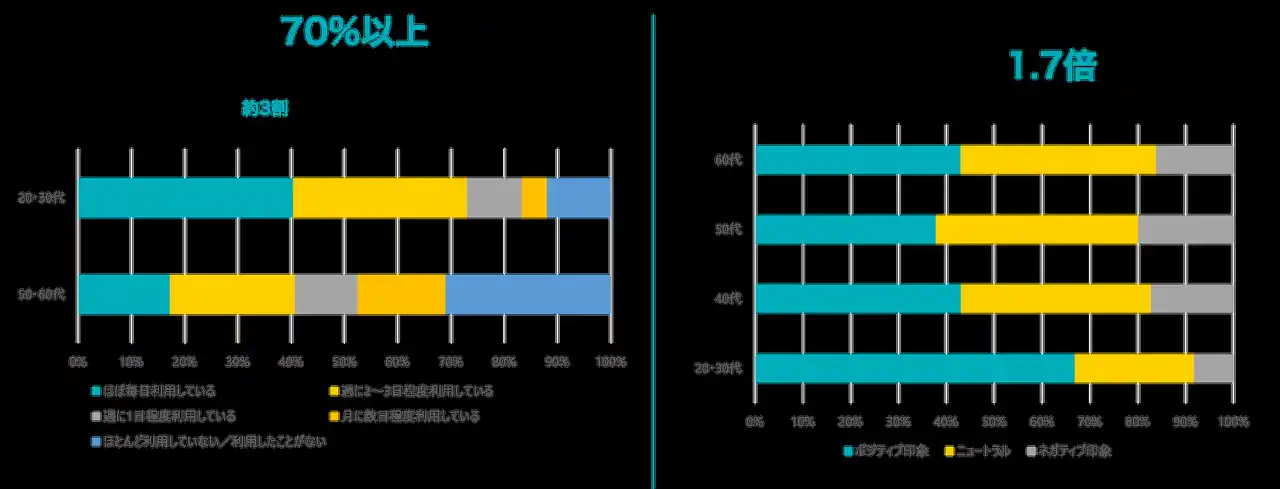 | 2.若手管理職の7割以上が「高頻度利用」。50代との「働きがい実感」の差は1.7倍 | |||||||||||||||