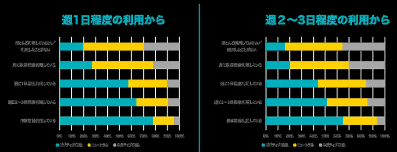| 生成AIの活用がポジティブな実感に繋がるには、一定の利用頻度(しきい値)があることが判明しました。 | |||||||||||||||