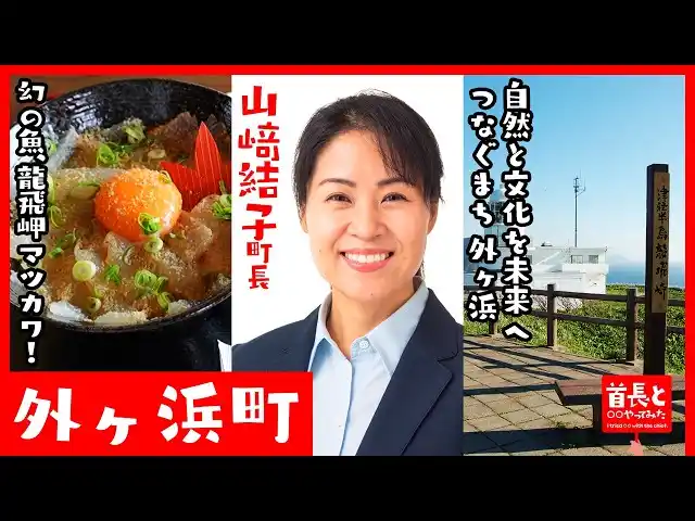 | 3月17日に配信開始しました、『首長と○○やってみた』では、青森県・外ヶ浜町の町長、山崎結子氏が登場し、あの演歌でおなじみの竜飛岬から、外ヶ浜町の魅力をアピールします。 | ||||||||||