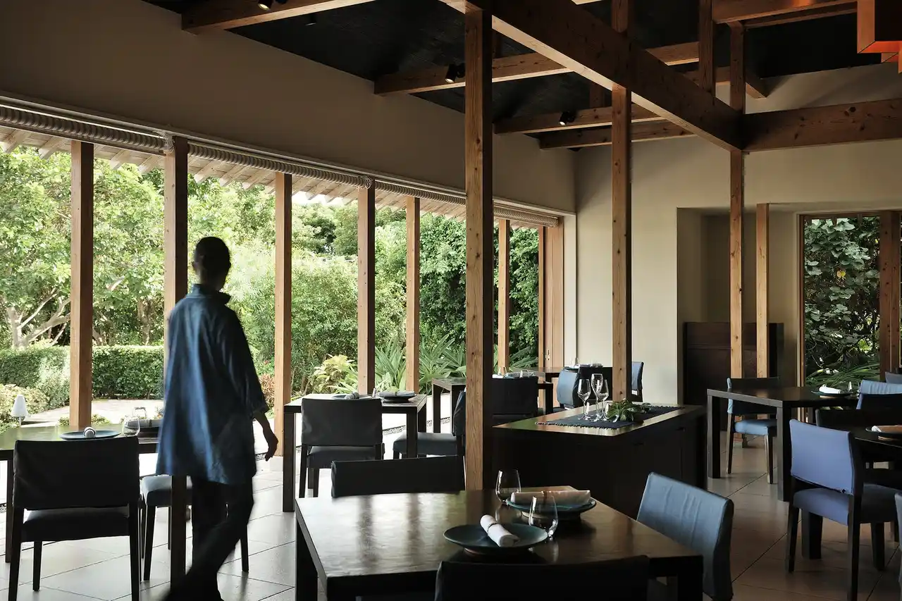 | 開放的な窓を持つダイニングでは、移り変わる空の色や植物を眺めながら、島テロワールを楽しむことができます。夕暮れ時は、空一面が染まり、陽が落ちると「星空保護区」にも認定されている八重山の星空が広がります。星のや竹富島が提唱する「島テロワール」は、ダイニングでの4皿の料理に加え、ゆるやかな時間の流れに身を任せたり、空や海の美しさに癒されたり、島での過ごし方も含めて完成する食体験です。 | |||||||||