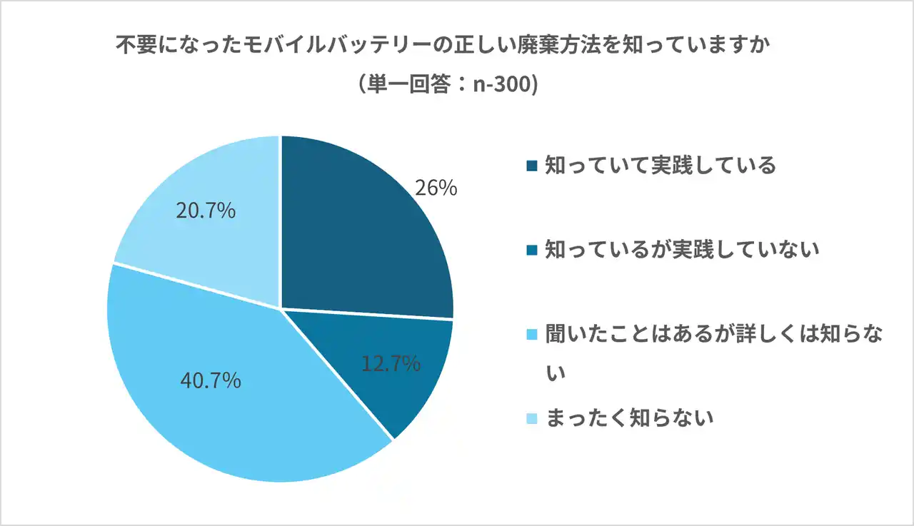 今回の調査では、約4割が半年以上使っていない「放置バッテリー」を保有していることや、発火・爆発ニュースに不安を感じている人が約75%にのぼる一方、廃棄方法を「正しく知らない」人が約6割に達するなど、「古いバッテリーに対するリスクを知っているのに捨てられない」というジレンマも浮き彫りになっています。モバイルバッテリーの安全な使用・廃棄は、いまや日常生活における新たなリテラシーのひとつになりつつあるといえるのではないでしょうか。