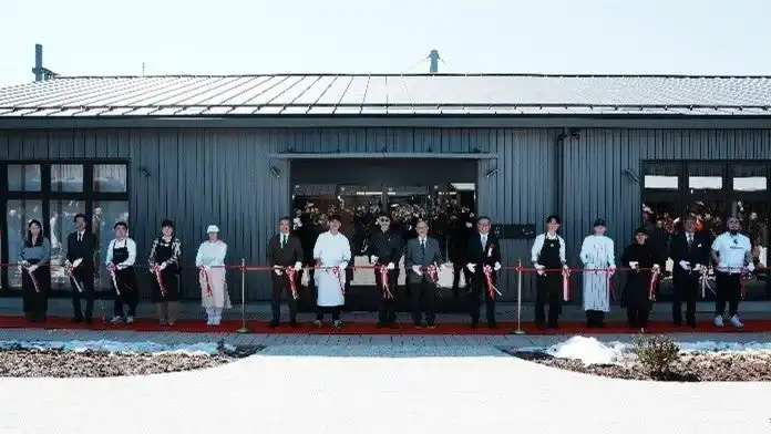▲テープカットの様子 (左から)株式会社アクアイグニス 代表取締役・立花哲也、軽井沢町町長・土屋三千夫、三菱地所株式会社 執行役員都市開発部長・鯉渕祐子しなの鉄道 代表取締役社長・土屋智則、カルチュア・コンビニエンス・クラブ株式会社 エステート戦略本部本部長・天川清二 |