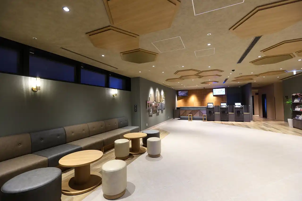 館内には、四日市市の文化や工業都市の歴史をモチーフとしたデザインを随所に取り入れています。ロビーはコンクリート調のタイルと、光をモチーフにした六角形の天井パネルを組み合わせ、四日市コンビナートの幻想的な夜景のきらめきを空間全体で表現しました。また、東海道を旅する情景や伝統工芸「萬古焼」の装飾をあしらい、地域の歴史と文化を感じていただけます。四日市市という街ならではの魅力と個性を体感できる、こだわりの空間デザインをぜひお楽しみください。 |