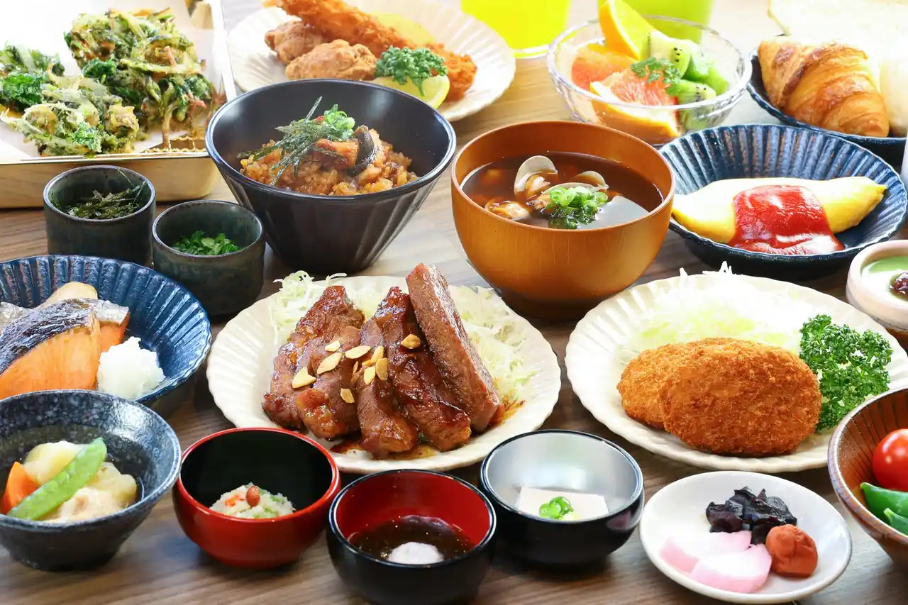 朝食は、ドーミーインならではの「ご当地料理」として、スタミナ抜群の「四日市とんてき」や「松阪牛コロッケ」をはじめ、旬の食材を使った小鉢横丁など、約50種類の和洋バイキングをご用意しております。 |