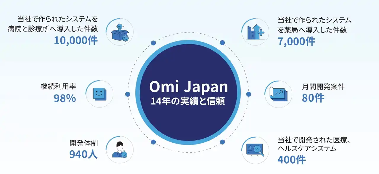 Omi Japan株式会社は日本向けの医療・ヘルスケアシステム開発に特化したオフショア企業です。15年以上の豊富な経験を有し、これまでに400以上のシステムを開発、病院・薬局など累計1万以上の医療機関に導入実績を有しています。開発実績は医療機関の内部で使用するシステム・患者向けシステムのほか、臨床試験・検査、福祉分野にまで多岐に渡ります。 |