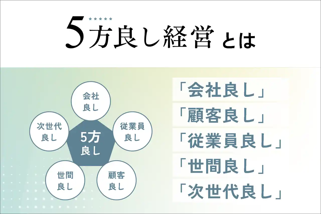 株式会社ルミッションでは、こうした課題に対応するため、 企業経営を5つの視点から整理する「5方良し経営」という考え方を提唱しています。 |