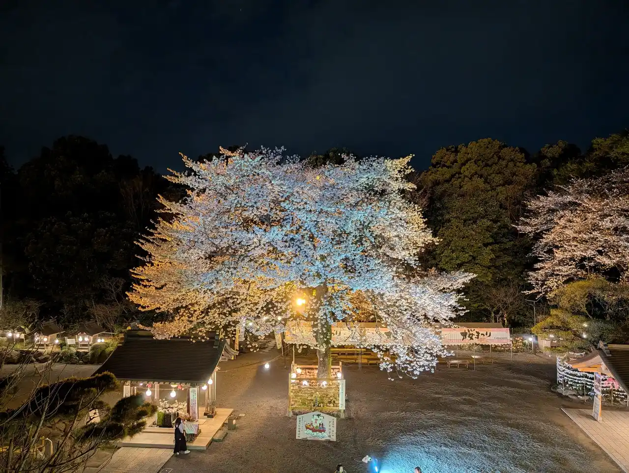 境内の中心に位置し、高さ20mにおよぶ巨大なソメイヨシノ「良縁桜」が見頃を迎える時期に、桜のライトアップや秦野名水仕込みの甘酒、桜まつり限定御朱印などで参拝された方をおもてなしするお祭りです。「良縁桜」とは、樹齢約70年のソメイヨシノで当分祠のシンボルともいえる存在となっており、令和5年に全国から寄せられた約150件の応募の中から愛称を決定。満開時には圧巻の景色が広がります。 |