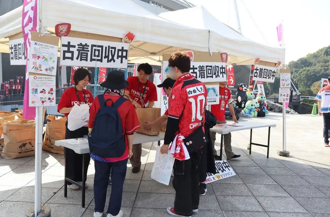 日本国内に留まらず、SDGsの達成に貢献するには何ができるかを考え、古着の再利用だけでなく、ワクチンの寄付や雇用創出などにつながる「古着deワクチン まごころプロジェクト」に賛同し、参加しています。この活動の輪を自社内に留まらせず、もっと広げたい、我々が応援しているロアッソ熊本とそのサポーターの皆様と一緒に社会貢献活動について考える機会としたい、という想いからスタジアムでの実施を企画しました。これまで2025年2月、6月、10月に本イベントを実施し、定期的な実施を望む声を多く頂いたことから、この度第4弾の実施となりました。 |