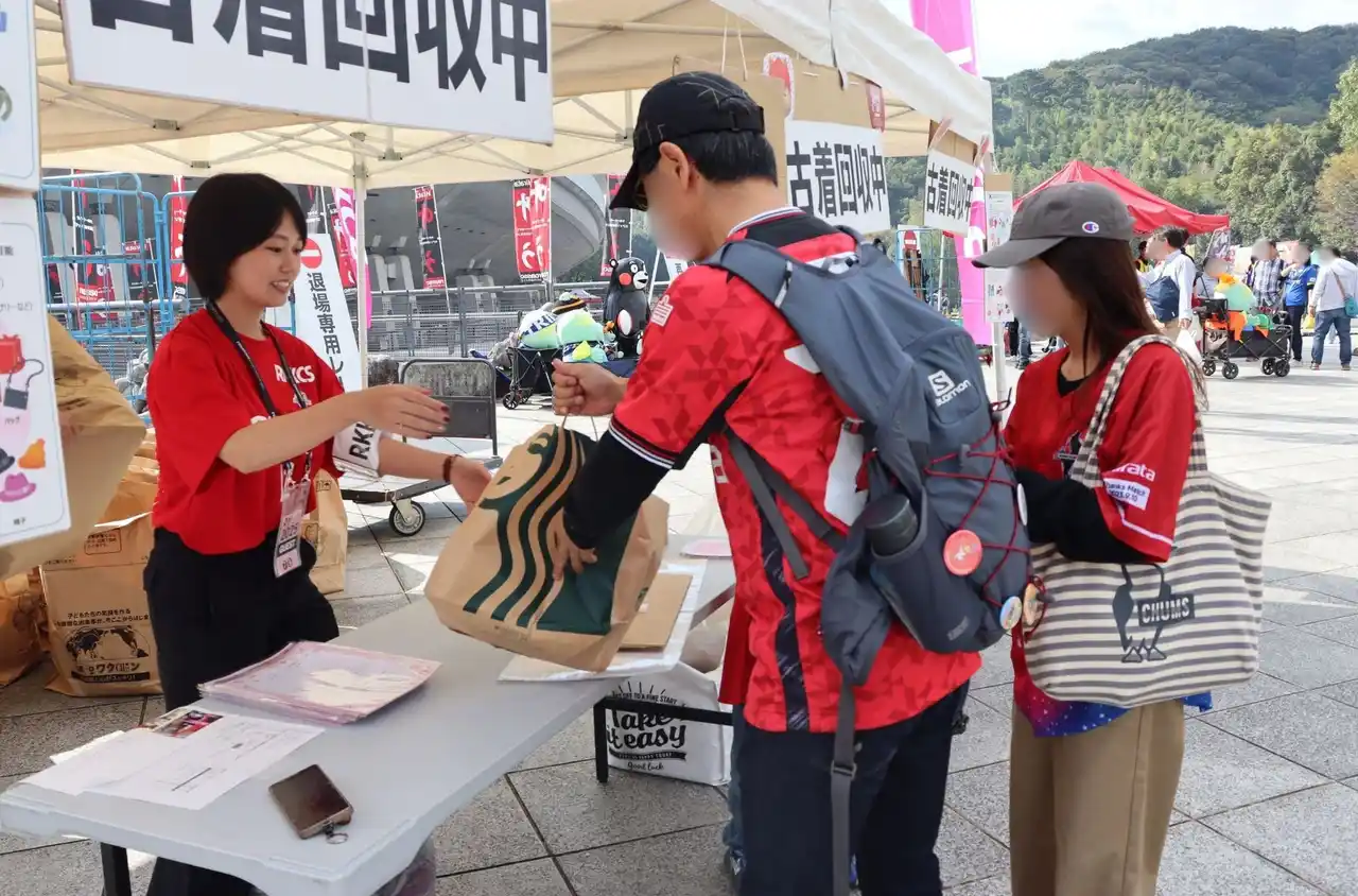 ご自宅にある、使わなくなった古着をスタジアムにお持ちいただくと、回収した古着は、開発途上国で再利用されるとともに、ワクチンの寄付や国内外の雇用創出など様々な社会貢献につながります。前回、2025年10月に実施した際は、専用キット33袋分の古着を回収することができました。