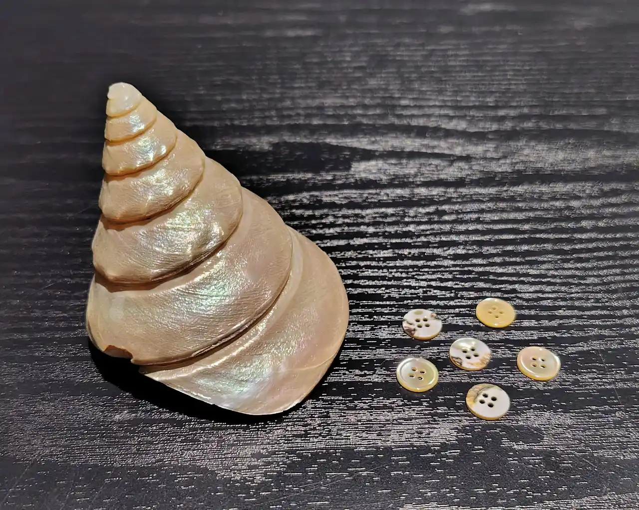 貝ボタンと原材料の貝 |