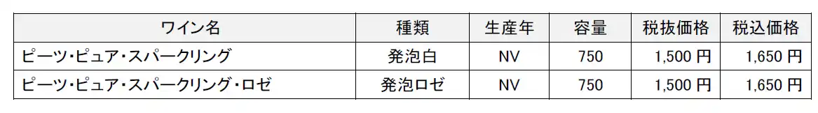 | 世界的な燃料や原材料費の上昇を背景に、ワイン価格は上昇傾向が続いています。手頃な価格でおいしいスパークリングワインを求めるお客さまの声に応え、オーストラリア産の「ピーツ・ピュア」のスパークリングワインの取り扱いを開始します。品質と価格のバランスに優れた商品を新たな選択肢として加えることで、より幅広い層のお客さまにスパークリングワインの魅力を提案していきます。 | |||