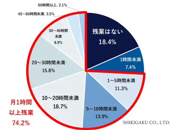 会社員の74.2%が月に「1時間以上の残業がある」と回答 |