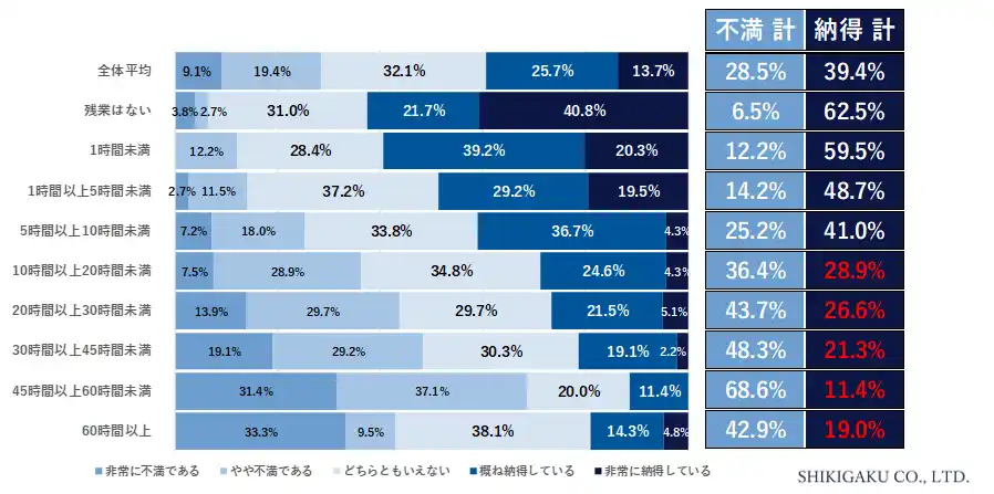その納得感は?「月10時間以上の残業」納得感を不満が上回るボーダーライン |