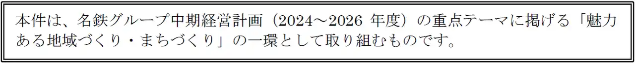 豊田市駅は、当社沿線における西三河地区のターミナル駅の一つとして、多くのお客さまにご利用いただいています。駅周辺エリアは洗練された商業施設や公共施設が集積する中心市街地でありながら住宅も混在しており、都市の利便性と豊かな暮らしが共存するエリアです。本施設は、当社および豊田市が推進する駅周辺の整備事業に合わせて開発を進めております。駅利用者と周辺居住者をターゲットとして、日々の暮らしを豊かにし、まちの賑わいに寄与することを目指します。 詳細は、下記のとおりです。 |
