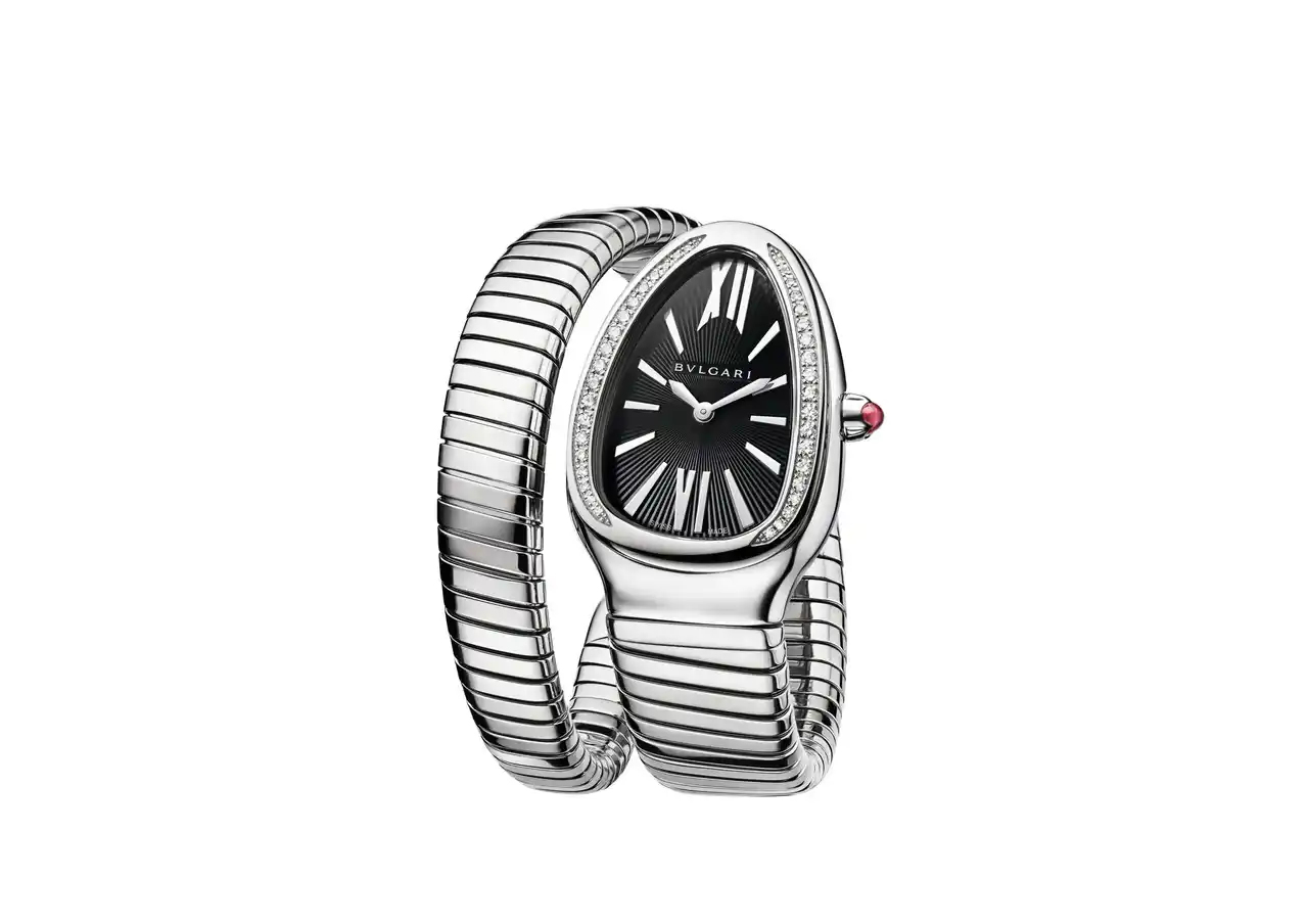 | ガブリエル・レオーネは、セルペンティのブローチとリング、ピアスとともに、オクト フィニッシモの時計を纏いました。 | ||||