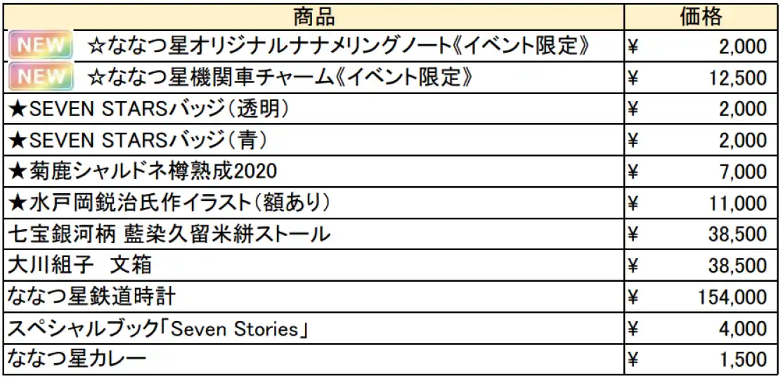 | ※☆印の商品は、新たに製作した「イベント限定アイテム」です。 | |||||||||