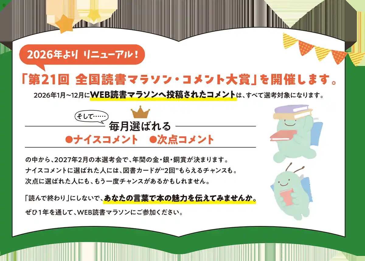 2026年よりリニューアル! 「第21回全国読書マラソン・コメント大賞」 |